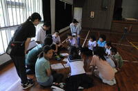 9月5日、給食終了後小学1年生から中学3年生までの全生徒を4つの班に分けた、「縦割り班」による運動会に向けた話し合いがありました。中学生を中心にリレーの走順について、みんなでアイディアを出しながら和やかな雰囲気で話し合いは進んでいきました。