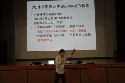映像による学習や、安省悟先生の東日本大地震の体験談、今野庸先生の講話等で地震津波の怖さを知るとともに、避難の仕方や避難経路などについて学習する機会となりました。